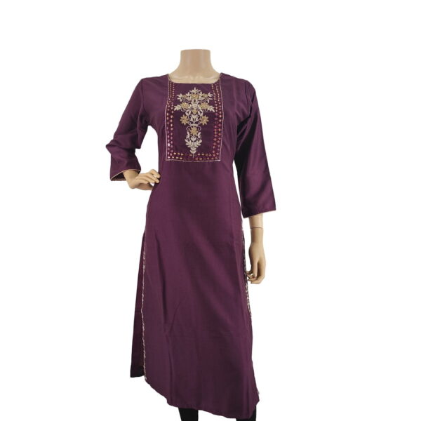 Purple Cotton Kurti with Embroidery Neckwork BK#151